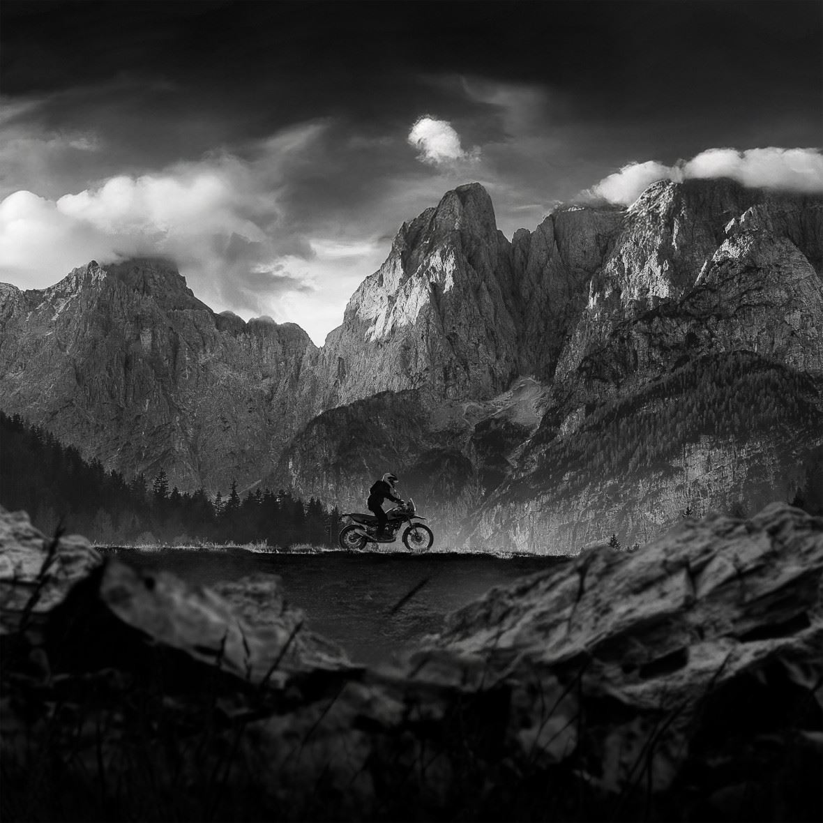 Factory-Installed Adventure Kit: Tubeless Spoked Wheels, Black Rally Seat, Black Rally Hand-guards and Rally Mudguard + Distinctive "Stealth Black” finish.